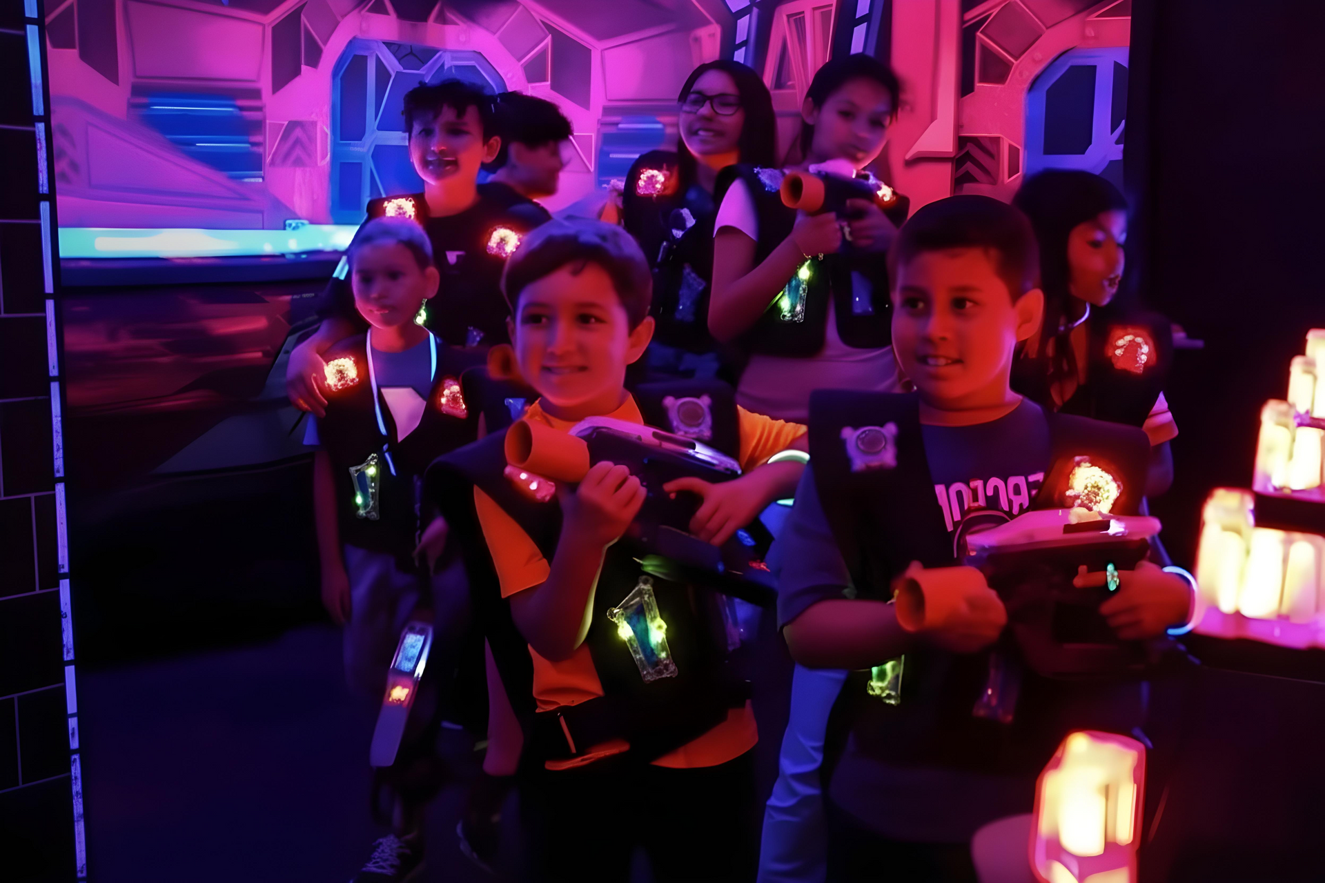 Whether you’re an experienced player or new to the game, our Space Mission Laser Tag promises an exhilarating experience that’s sure to create lasting memories! Are you ready to take on the challenge and light up the galaxy?"